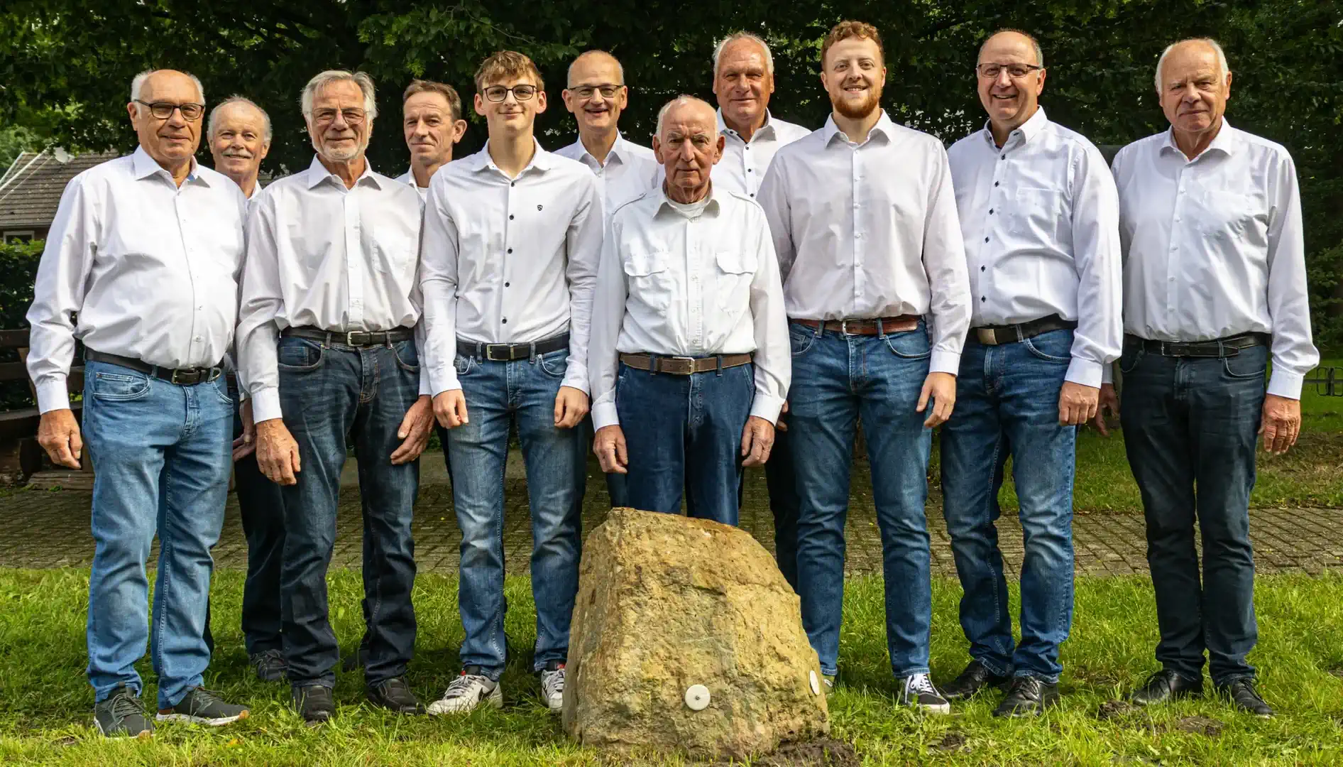 Von links: Günter Tierp, Friedel Snethkamp (Ehrenvorsitzender), Friedrich-Wilhelm Leiwe, Walter Braak, Erik Krumme, Falk Rehorst, Ralf Krumme, Johannes Kammerer, Volker Möller (Vorsitzender), Willi Buller, Siegfried Schürmann, Axel Krexa (Kassenwart), Friedrich Höcker, Ernst Saatkamp, Erwin Nüßmeyer, Horst Wiesner, Martin Zeits, Hans-Walter Riesenbeck, Martin Rzitki (Notenwart), Herbert Korspeter und Andreas Oeljeklaus (Chorleiter).